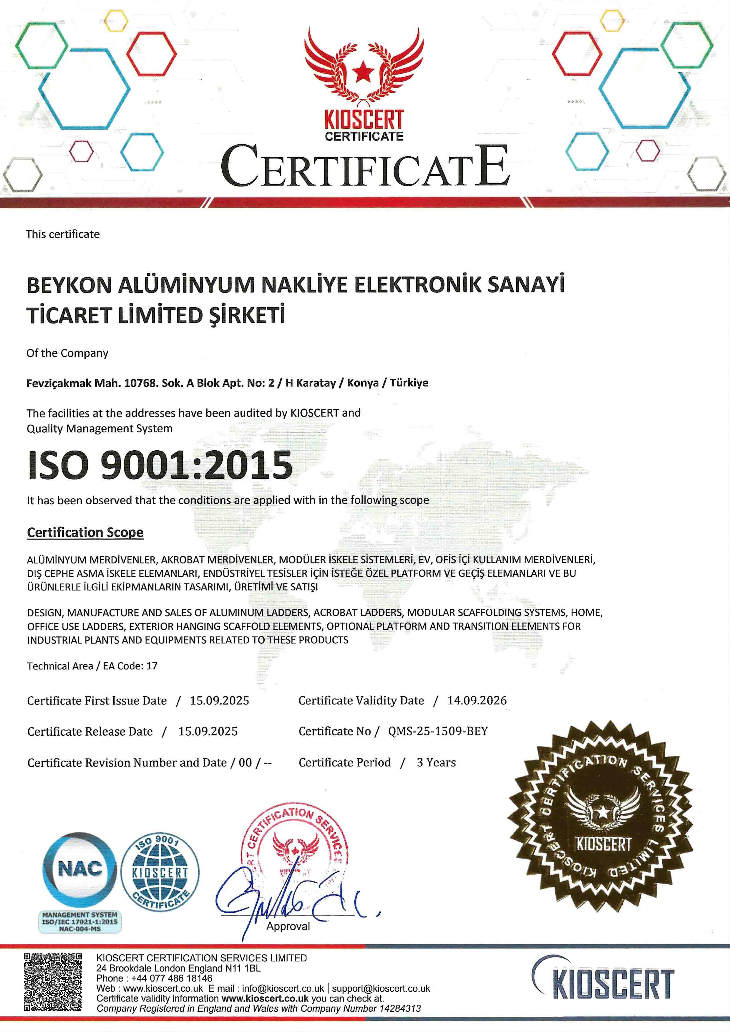 Müşterilerimizin memnuniyetini artırmak için Kalite Yönetim Sistemi şartlarına uymayı,